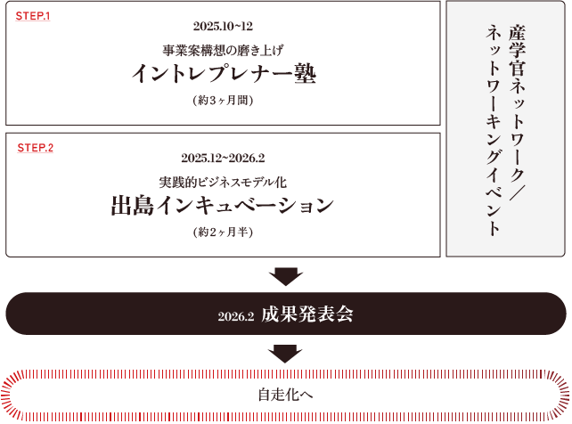 本プログラムは、参加企業だけでなく、地域に根差した支援者・専門家の皆さまと共に構築する「成長のエコシステム」です。事業アイデアの萌芽を見つけ、連携・支援のきっかけをつくる場として、ぜひ上記イベントにご参加ください。