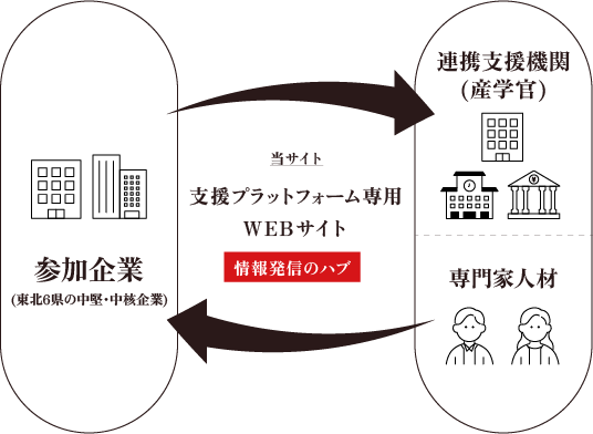 本プログラムでは、単なる事業支援にとどまらず、東北エリアの中堅・中小企業を中心とした継続的な支援ネットワークの構築を目指します。